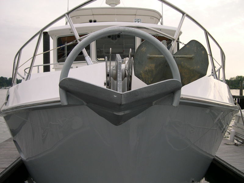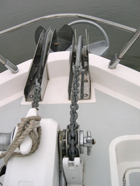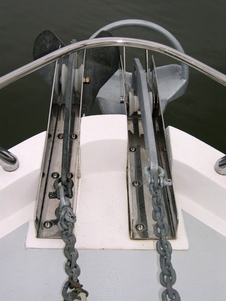 The Rocna is a 40 kg. It approaches the guffaw point, so it is the right size. I spoke to the mfr in Vancouver, he said it would fit, he was right, it fits like it was made for the boat. I have 400' of BBB chain, I rigged a swivel to the anchor with a shackle in the shank. We've been cruising since Aug, and have used the Rocna extensively, we anchor more than we are dockside. It has performed superbly. We anchored in Brigantine off Absecon Inlet, NJ in a 35 kt blow, we never moved. The Rocna website indicates that the anchor will set within 3 ft, and I would concur with that assessment with the exception of Chesapeake bay muck, where dropping the anchor, letting it "steep" then backing down slowly after 10 minutes or so seems to insure a better set.;I really love the Rocna, it's improved our rest on board, and had really improved our confidence in anchoring. I can recommend it without reservation!;— Steve Sipe, owner MV Maerin, Lying Price Creek SC USA. Website/blog: http://maerin.net/